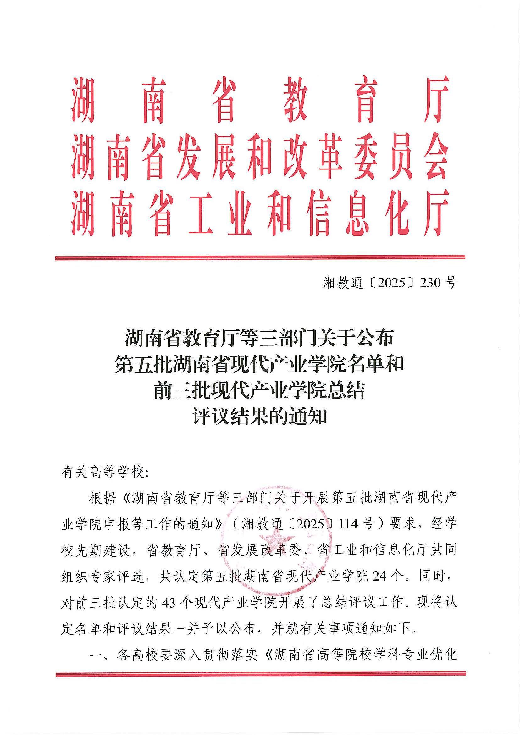关于开展第五批湖南省现代产业学院申报等工作的通知