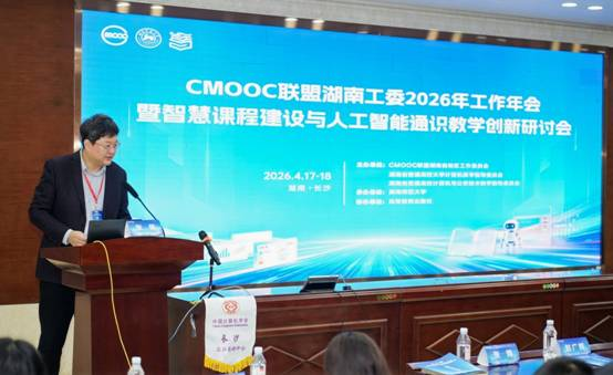 (通讯员 沈坤) 4月18日,CMOOC联盟湖南工委2026年工作年会暨智慧课程建设与人工智能通识教学创新研讨会在我校中和楼智信讲堂隆重召开。本次会议由CMOOC联盟湖南工委、湖南省普通高校大学计算机教学指导委员会、湖南省普通高校大学计算机与公安技术教学指导委员会主办,我校承办,高等教育出版社协办,汇聚了来自全省高校、教育科研机构及行业企业的百余位专家学者与教学管理者,共谋智能时代教育发展新路径。会议以“智慧课程建设与人工智能通识教学创新”为主题,聚焦AI赋能教育教学改革的前沿问题,旨在推动高校主动适应科技革命与产业变革新形势,构建高质量、智能化、个性化的人才培养新生态。